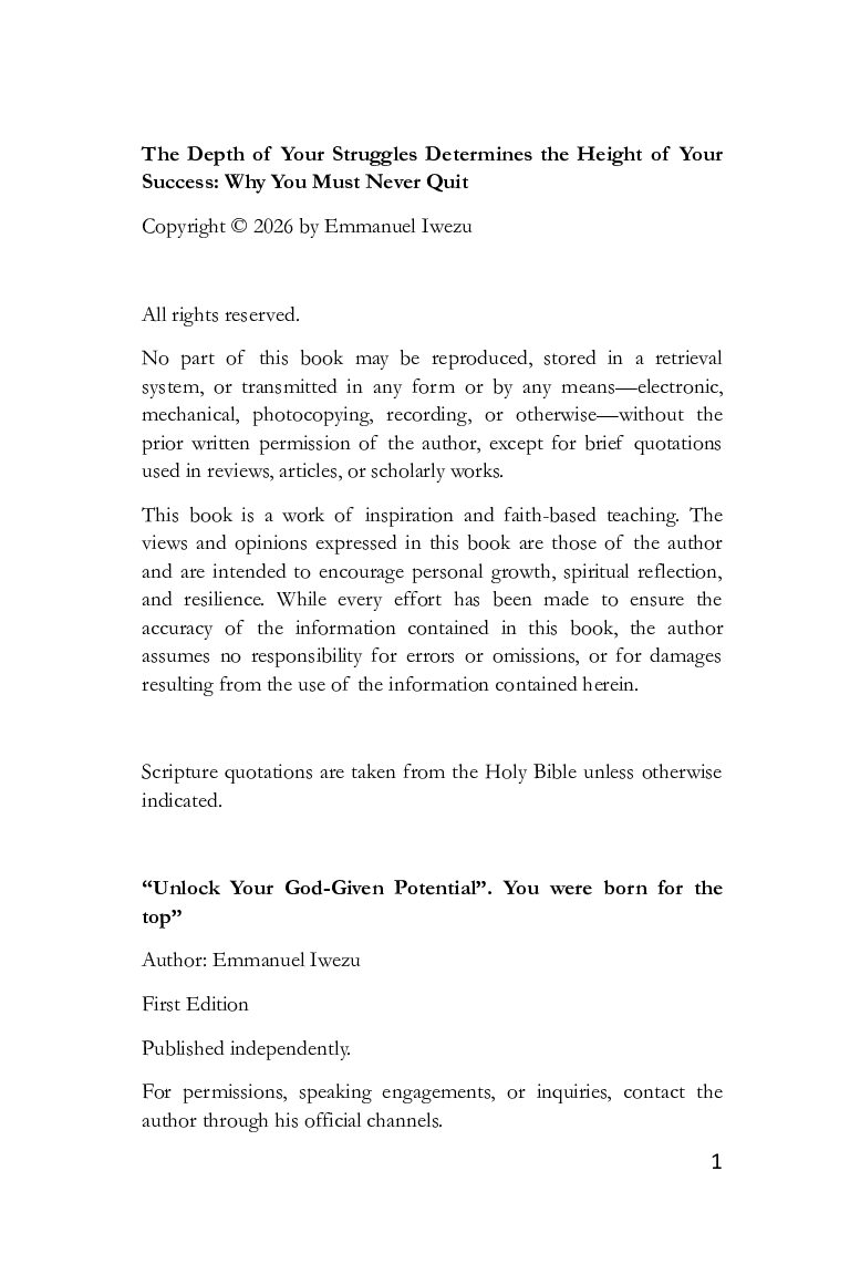 The Depth Of Your Struggles Determines The Height of Your Success: Why You Must Never Quit pp Posted on April 16, 2026April 16, 2026 by emmanuel.iwezu@gmail.com This content is restricted.