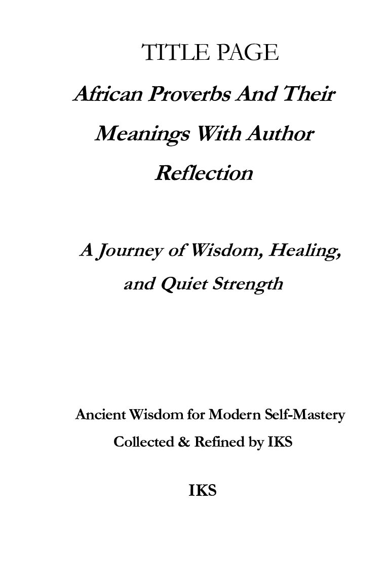 African Proverbs And Their Meanings With Author Reflection: A journey of Wisdom, Healing, and Quiet Strength