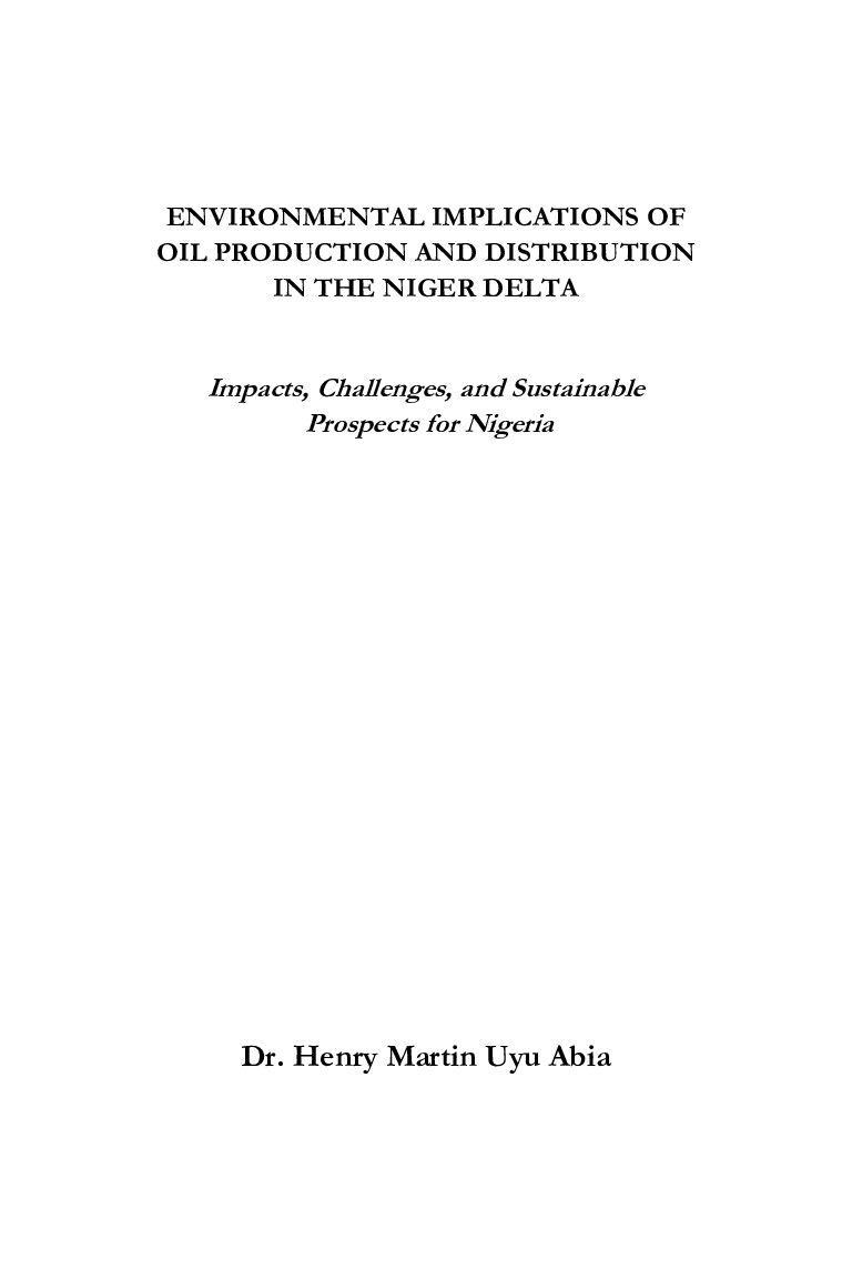 ENVIRONMENTAL IMPLICATIONS OF OIL PRODUCTION AND DISTRIBUTION IN THE NIGER DELTA